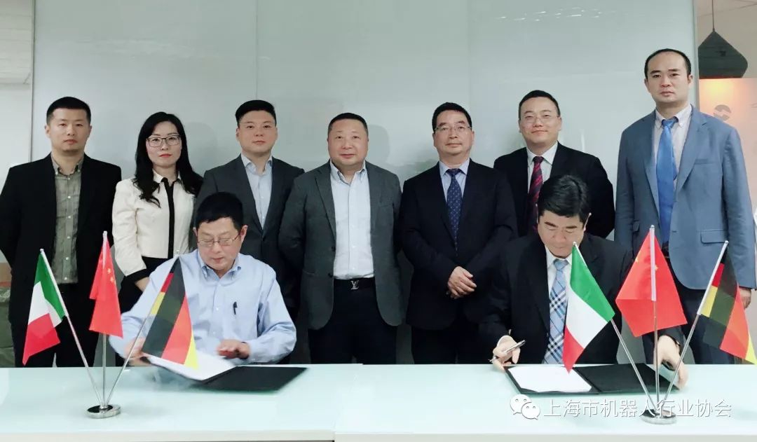 协会理事 上海工业商务展览有限公司总经理周巍(左)与汉诺威米兰展览(上海)有限公司总经理刘国良(右)签署合作协议