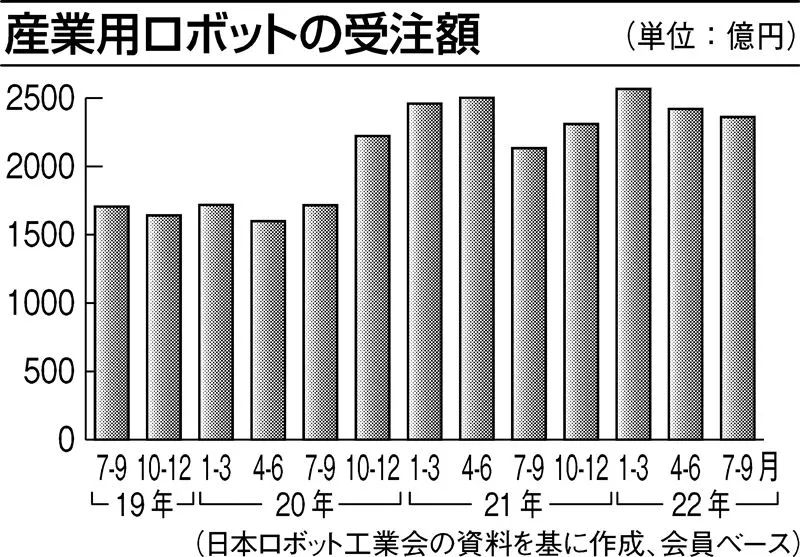 日本机器人工业会10月27日发布消息称,2022年7-9月份,工业机器人的产值(以会员为准)创季度新高,达到2231亿日元(比去年同期增长9.2%)。连续8个季度增加,2021年1-3月期以后维持着2000亿日元以上的高水平。订单金额也同比增长10.7%,达到2361亿日元。