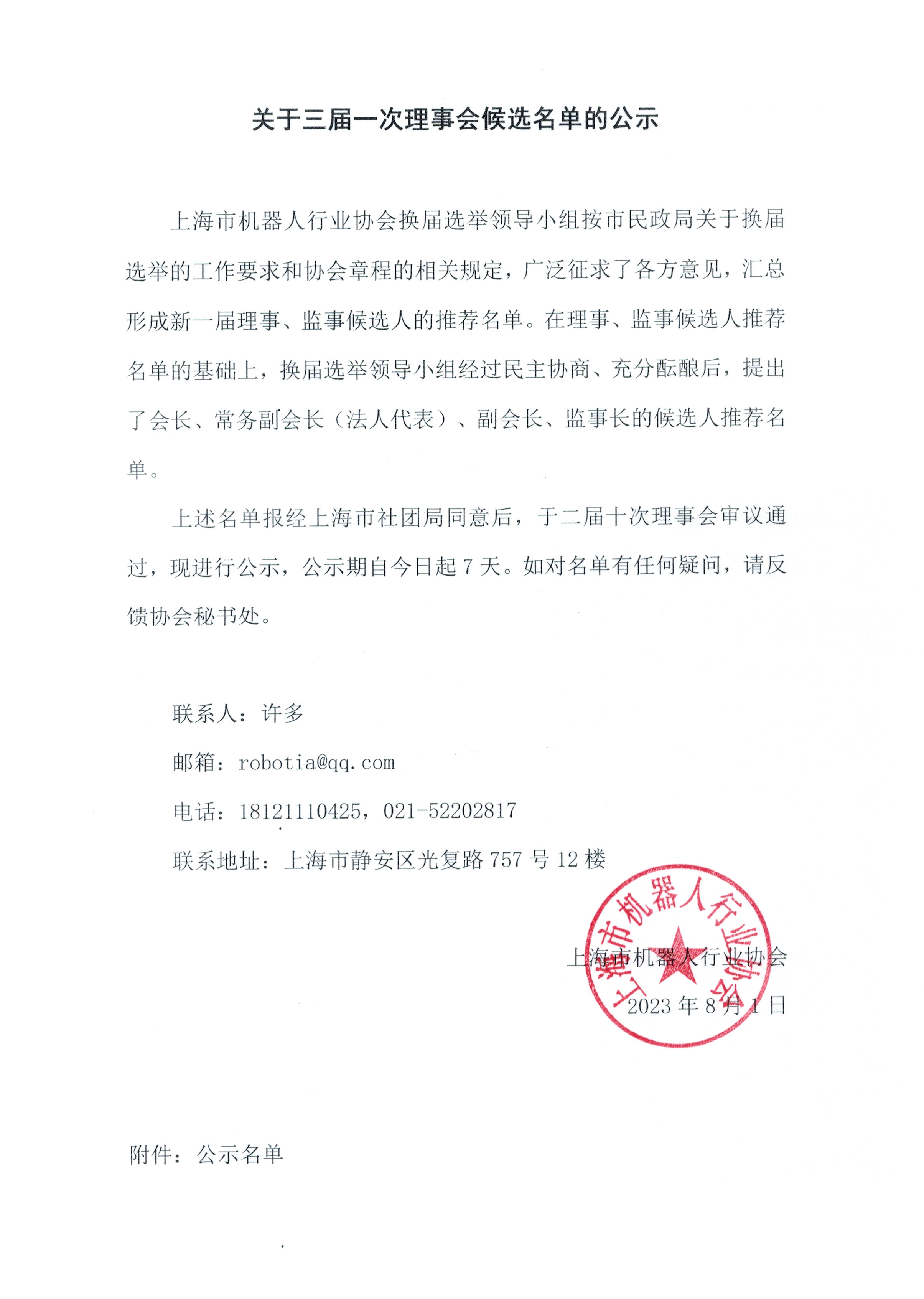 关于三届一次理事会候选名单的公示