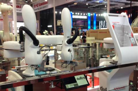 川崎: duAro,即由英文“Dual”和“Robot”组合而成,拥有2个水平多关节手臂,动作自由灵活,也实现了2台定位机器人无法做到的2个手臂相互协调、共同完成作业。duAro专门针对3C、电气电子等生产周期短,自动化尚不发达的领域推出的机器人,可以在狭小工作范围内高效作业,在灵活度、视觉等技术领域均是传统机器人不可比拟的。