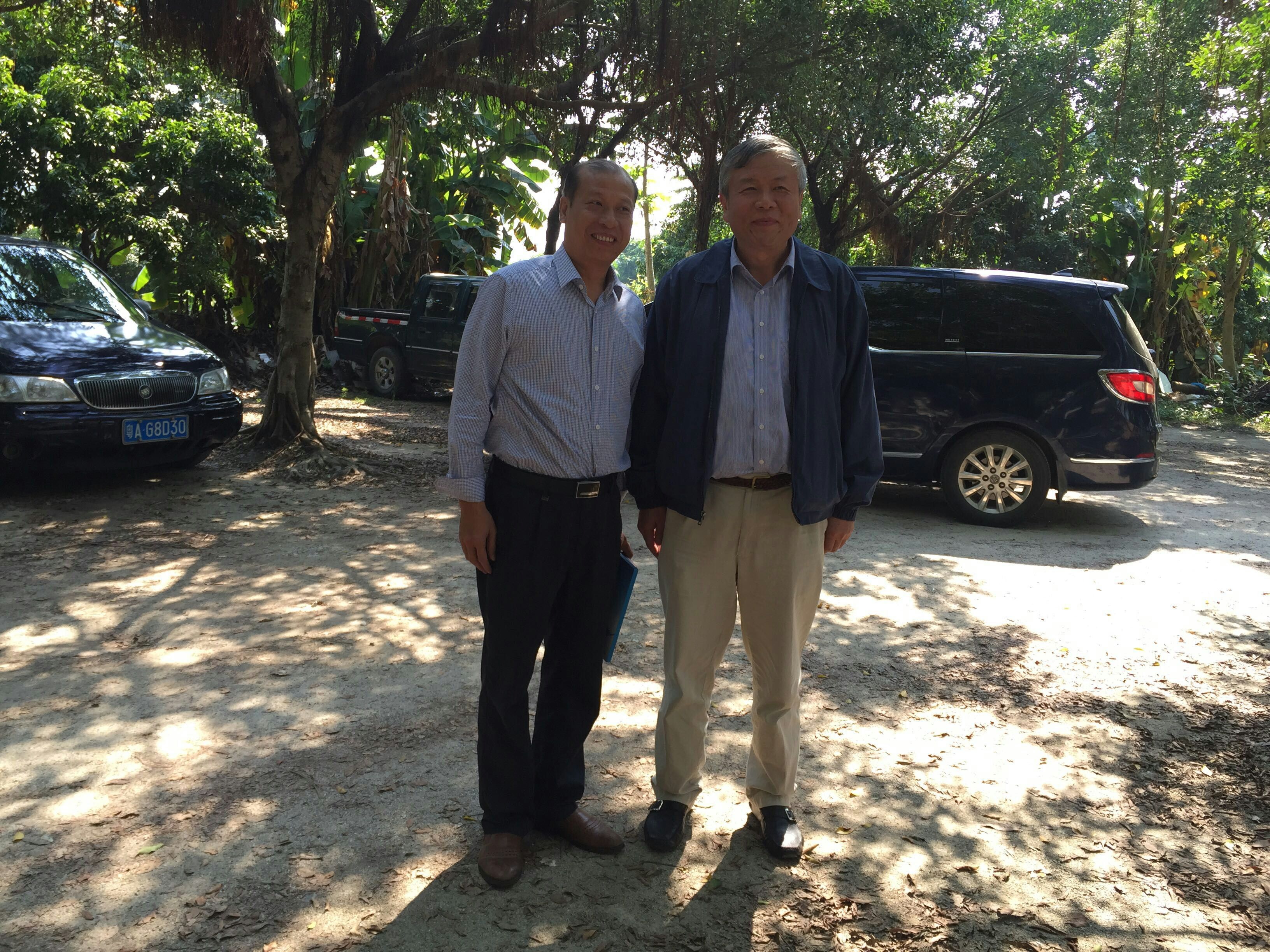 东莞固高自动化技术有限公司总经理刘甲琪(左)为戴柳会长介绍即将落成的智能制造大楼
