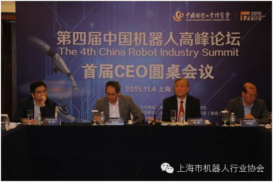 今年首次举行的CEO圆桌会议也在机器人高峰论坛同日举行,沈阳新松总裁曲道奎、广州数控董事长何敏佳、上海电气集团副总裁黄瓯、ABB上海公司总经理李刚、上海发那科公司钱晖、库卡上海公司孔兵总裁等近30余位机器人企业负责人参加圆桌会议,围绕“机器换人”所延伸的系列话题,展开了热烈的讨论和交流,会后将形成报告供政府产业政策部门参考。