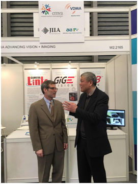 3月17日上午,戴柳会长一行在上海新国际博览中心举办的2016机器视觉展现场,应约与美国机器人协会会长杰夫•伯恩斯(JeffBurnstein)会谈,双方都表示将促进两协会的交流和合作。孟犁秘书长等一同参加。