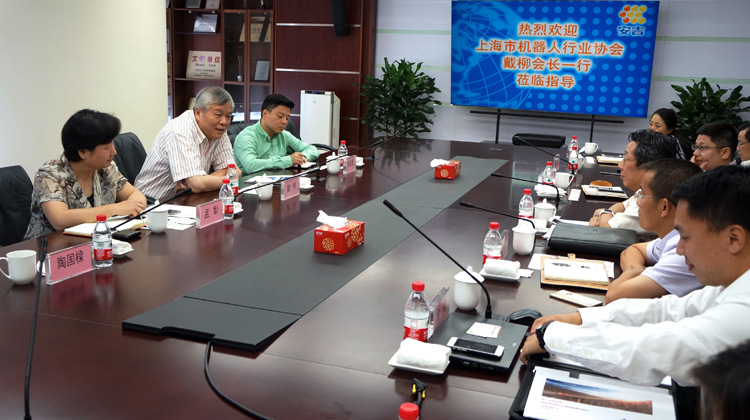 戴会长表示,看了智能化控制中心,听取了公司智能化应用和下一步发展的介绍,为安吉物流发展的劲头和信心倍感振奋。戴会长指出,当前上海的制造业正面临严峻的挑战,安吉物流把产业升级定位在配套的整合能力上,牢牢把握自己的优势,利用智能化、信息化、自动化提高工作效率,确保物流品质,打造智能供应链,安吉的智能化工作与上海科创中心建设的大局相互呼应和融合非常适时。希望安吉物流研究和把握好升级发展的方向、路径,根据企业自身实际,找准与机器人产业发展结合的切入点。戴会长表示,机器人行业协会是反映会员的意愿和要求,搭建企业与政府沟通的平台,也是支持会员发展,整合各种服务资源,为会员提供相关政策、信息、交流、咨询、协作及项目对接服务的平台。非常愿意利用这一优势,为会员单位寻找合作伙伴和项目对接提供帮助。