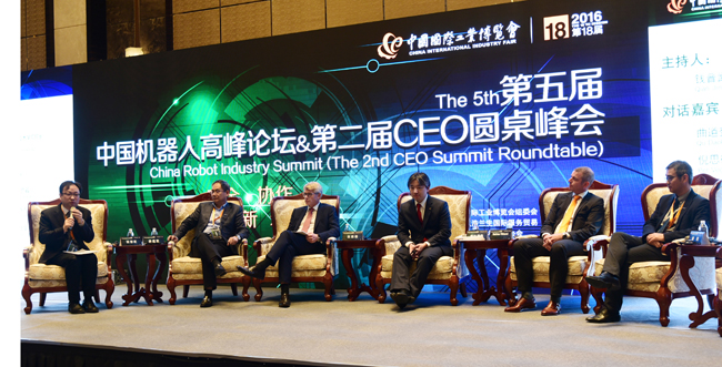 国家机器人研究中心副主任、沈阳新松总裁曲道奎、ABB集团高级副总裁机器人业务全球总裁倪思德Per Vegard Nerseth、发那科董事专务执行役员、机器人事业本部本部长稻叶清典、KUKA 高级副总裁全球行业总经理Mathias Wiklund、 Rethink 总裁兼首席执行官Scott Eckert,以及安川、大疆、新时达、德梅柯、埃夫特、埃斯顿、李群自动化、赛腾高速发展的本土企业CEO出席圆桌峰会,围绕“机器人安全与人机协作”、“机器人系统集成广泛应用”、“机器人创新与未来”等话题进行了深入探讨。圆桌峰会现场气氛十分热烈,300余位嘉宾与会。峰会由上海机器人学会理事长、上海大学中欧工程技术学院院长钱晋武教授主持。