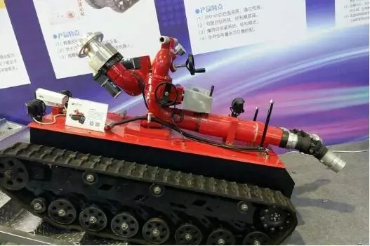 消防机器人搭载着消防水炮和履带式智能移动底盘,它能代替消防员进行外围的救援工作。其特点有:拥有两个进水口,仰角30'射程可达60多米;可以拖动两条60米的水带,这相当于6、7个消防员的工作量;能在距离火源30-50米的范围内,通过操纵台进行远程灭火。虽然有诸多优点,但是由于橡胶的履带和不耐热的电子元件,机器人难以做到像人一样进入火场,同时,在智能化和设备改进方面还需加强。展会负责人表示,“目前市场正在研发的新一代消防机器人具备完全代替消防员的功能,在机器人的前部拥有一个火焰寻找装置、自动定位装置,通过传感器实现三维的全自动灭火,不需要人工的参与,而这个过程,大概需要5-10年。”