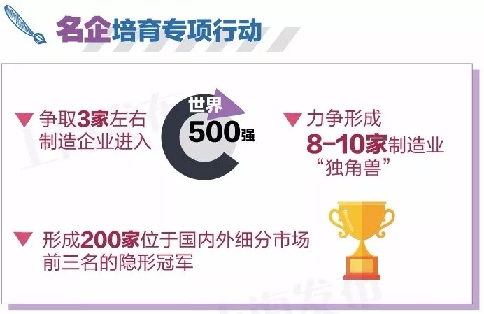 三是注重瞄准目标持续发力。未来三年里,围绕加快建设全球卓越制造基地的总体目标,设定了三个分项目标;就是到2020年,要初步建成世界级新兴产业发展策源地,初步建成若干世界级先进制造业集群,初步建成世界级制造品牌汇聚地。