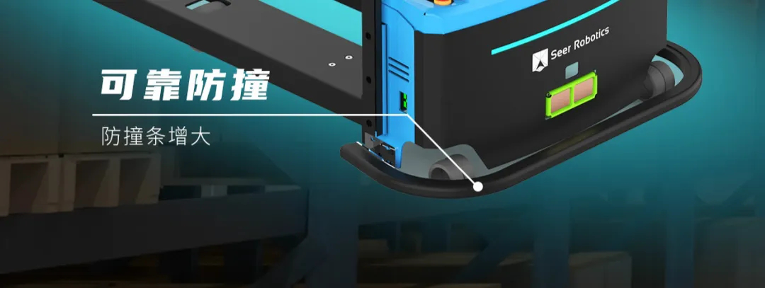 为了进一步确保机器工作过程中的安全性,仙知机器人基于SRC的激光SLAM地面式自动叉车2020款在第一代的基础上加大了机身底部的防撞条,配合多种传感器的安全防护,保证叉车作业过程中人员、货物和机器的安全。