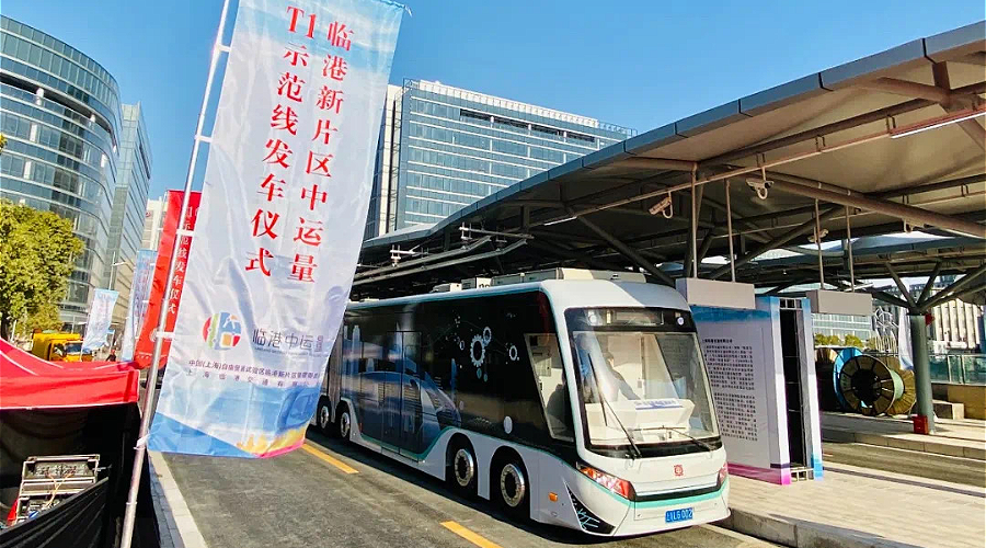 1月1日,上海电气全国首列数轨列车在上海自贸试验区临港新片区中运滴水湖站正式发车测试运营。