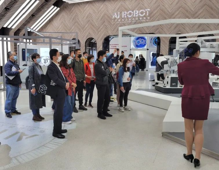 参观学习的第二站,在浦东康桥的张江机器人谷,在张江机器人谷先导区内,集中展示机器人谷内企业的科研成果与应用场景,向公众科普与机器人科技相关的前沿知识。作为“智能造”硬核产业的集中承载区,到“十四五”末,张江机器人谷目标实现园区工业总体产业规模700亿元,入驻机器人核心企业150家,上市企业10家,形成关键技术空前发展、应用落地全面开花、产业发展特色鲜明、产业生态体系健全的良好局面,成为具有全球影响力的机器人产业发展高地和创新中心。